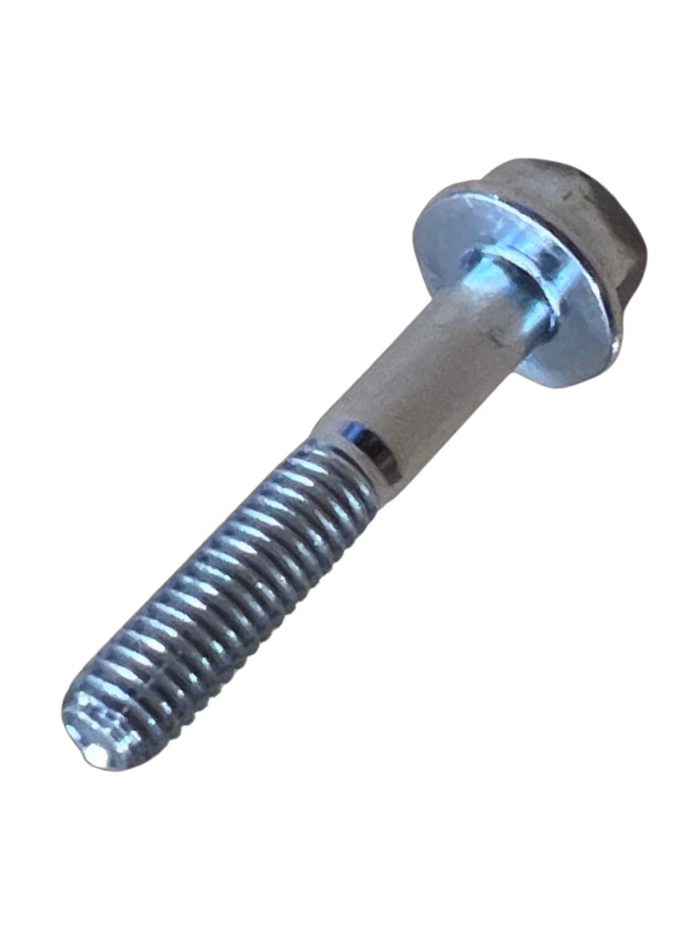 En blankförzinkad sexkantskruv med slät fläns enligt EN 1665.