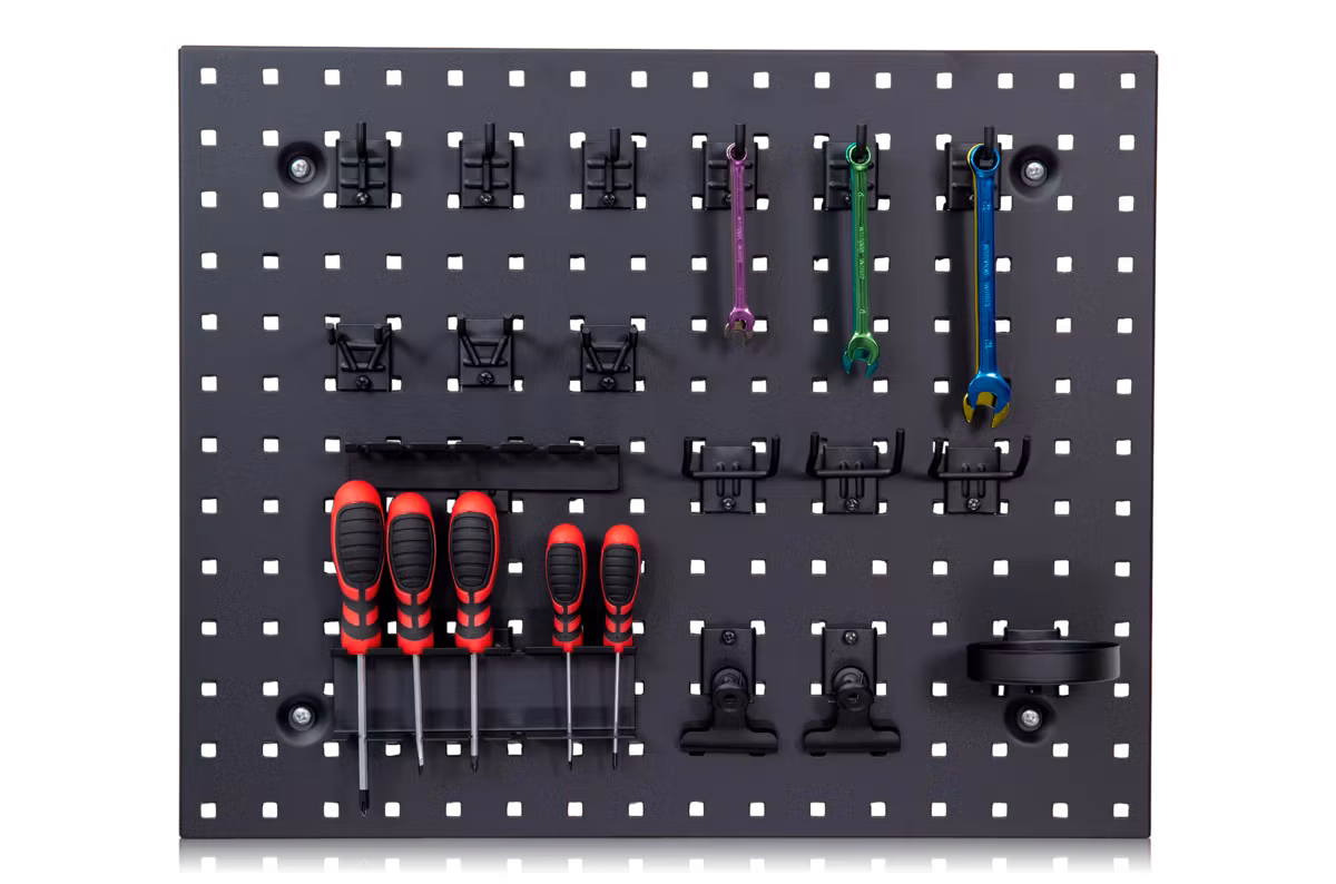 Skapa ordning bland dina verktyg med denna svarta verktygstavla. Tavlan passar med alla våra verktygskrokar och har hålavstånd cc 38 mm med hålbild 9x9 mm. Verktygstavlans perforering gör det enkelt att fästa, ta loss och flytta runt krokarna. En smidig lösning för att skapa bra överblick på dina verktyg, samtidigt som du gör arbetet mer effektivt.