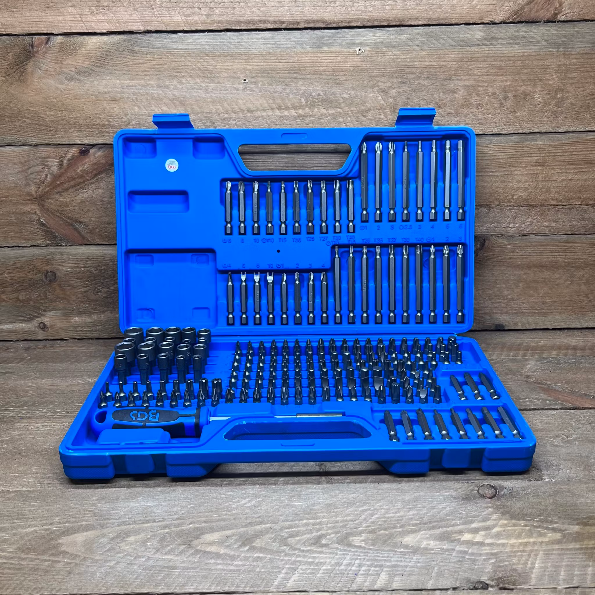- 7 bits T-Profil (för Torx) med borrning: T10 - T15 - T20 - T25 - T27 - T30 - T40
