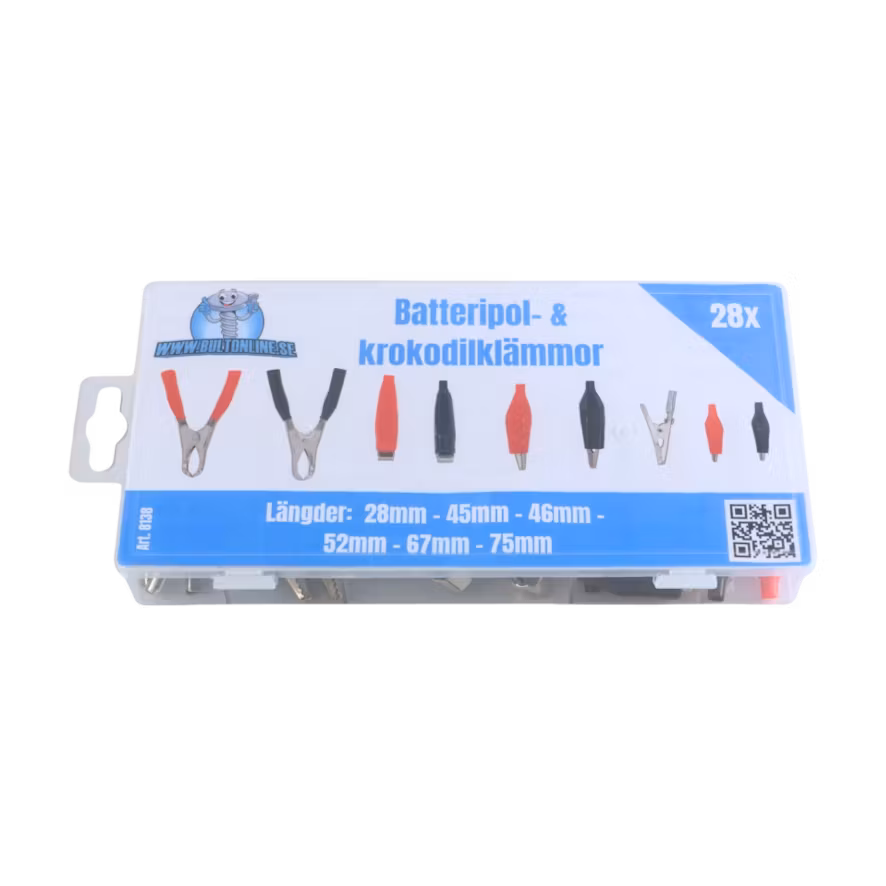 Sortimentsats – batteripol- och krokodilklämmor – 28 delar
