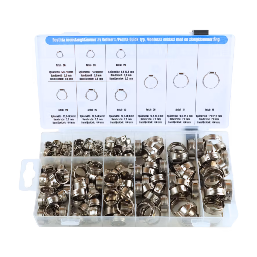 Sortimentsats - rostfria öronslangklämmor - 170 delar