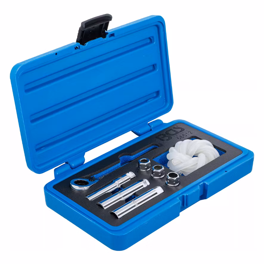 För luftning av bromssystem utan demontering av hjulenSpärrnyckel underlättar öppning och stängningSlangen förblir på luftningsnippeln vid öppning / stängning6 specialhylsor: 9 x 29 mm - 9 x 75 mm - 10 x 29 mm - 10 x 75 mm - 11 x 29 mm - 11 x 75 mmInklusive luftningsslang med inre diameter 4 mm