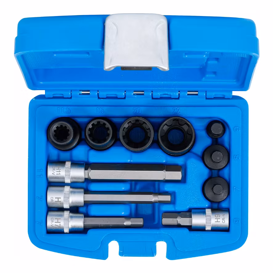 - 1 Bromsokshylsa: 10 mm (3/8"), Längd: 24 mm, Inre sexkant 8 mm (BGS 4996)
