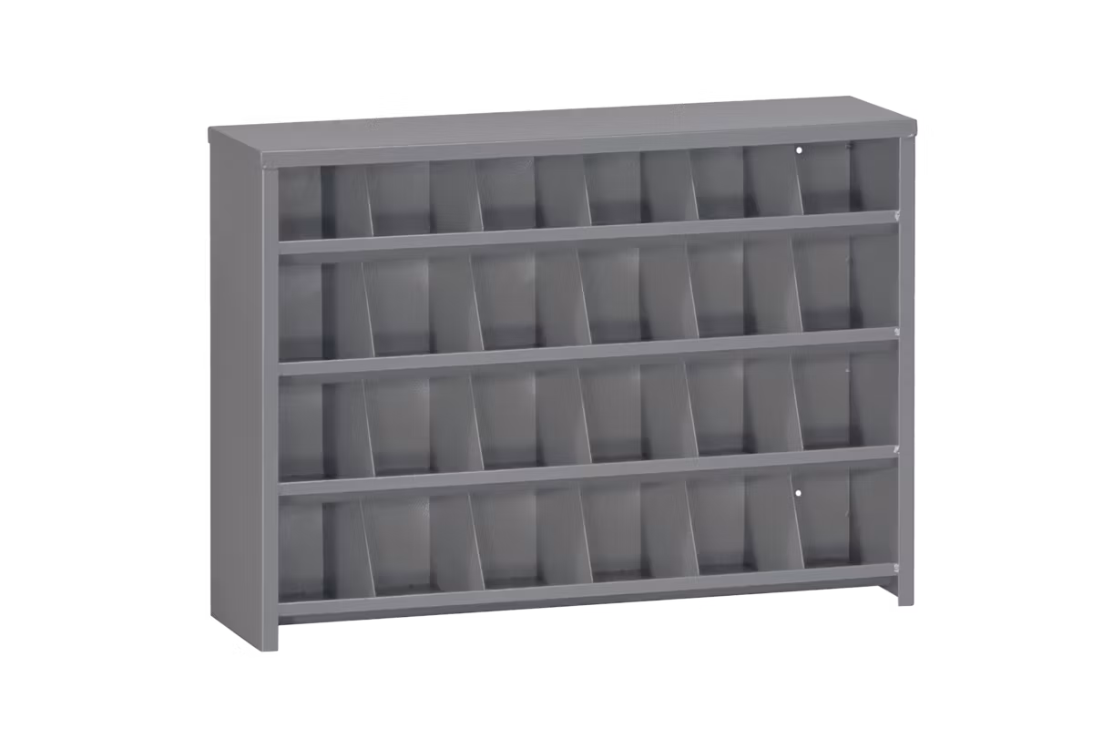 Bultfack av plåt med 24 stycken verktygsfack. Kan placeras ovanpå bultfack 4-570-1 eller hängas upp på vägg.