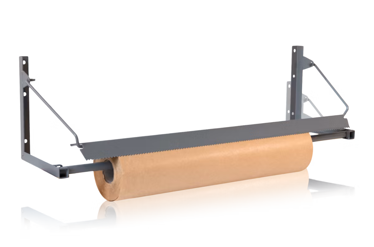 Praktiskt väggställ för pappersrullar (80 cm). Grålackerat rörstativ. Enkel montering. Levereras utan rullar.