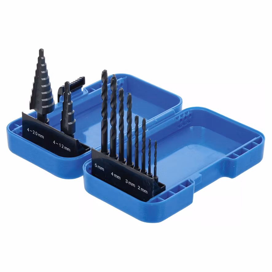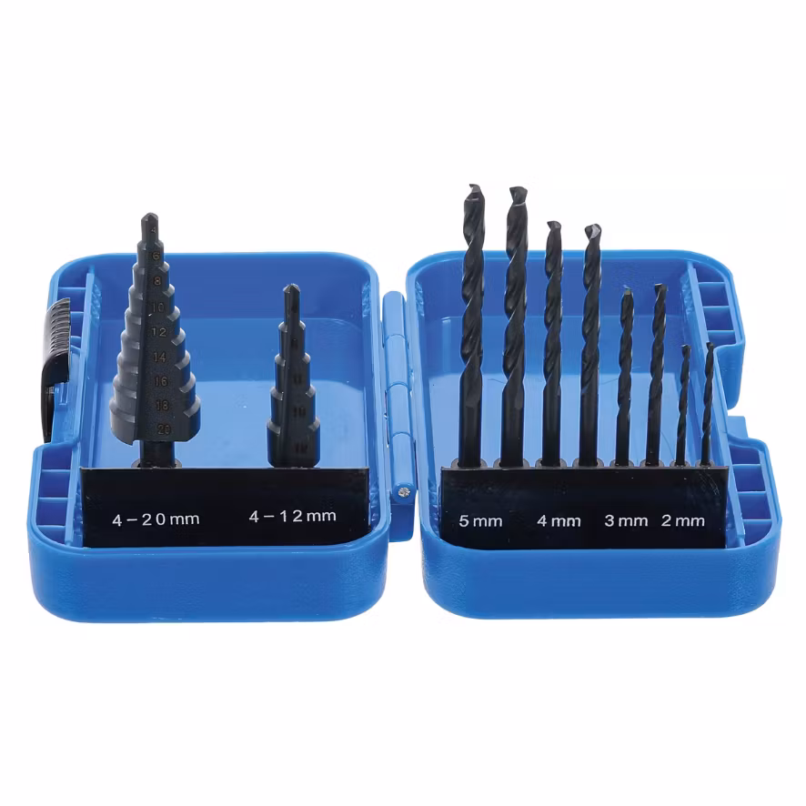 Spiral och Stegborrsats HSS 4 - 12 / 4 - 20 mm 2 - 5 mm 10 delar 436.00 SEK I lager. Lägg i korgen Artikelnummer: 1686 Dela Information Recensioner Leveransomfattning:1 Stegborr 4 - 12 mm1 Stegborr 4 - 20 mm2 Spiralborrar 2 mm2 Spiralborrar 3 mm2 Spiralborrar 4 mm2 Spiralborrar 5 mm